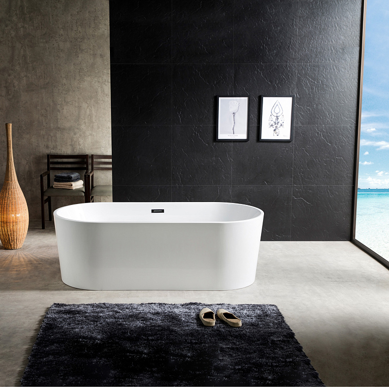 Ванна акриловая, свободностоящая, в комплекте с сифоном и металлической рамой.