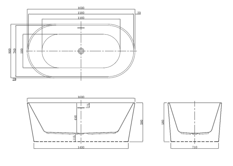 —Ванна акриловая Azario Bristol 160х80 отдельностоящая (BRI16080)