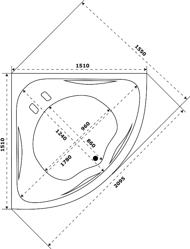 —Ванна акриловая Azario Азура 150х150 пристенная (АЗВ0001)