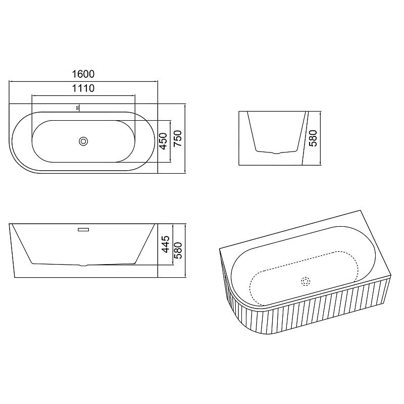 Рифленая внешняя поверхность: Уникальная рифленая текстура внешней поверхности не только придает ванне изысканный и современный вид, но и обеспечивает дополнительное сцепление, предотвращая скольжение и повышая безопасность.