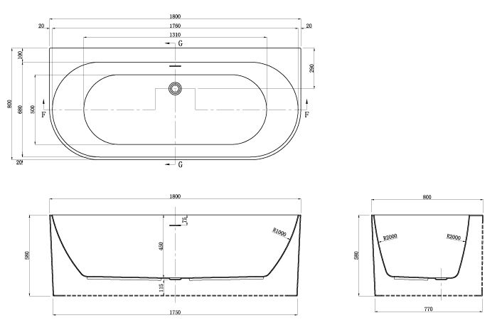 —Ванна акриловая Azario BRADFORD х180 пристенная (BRA18080)