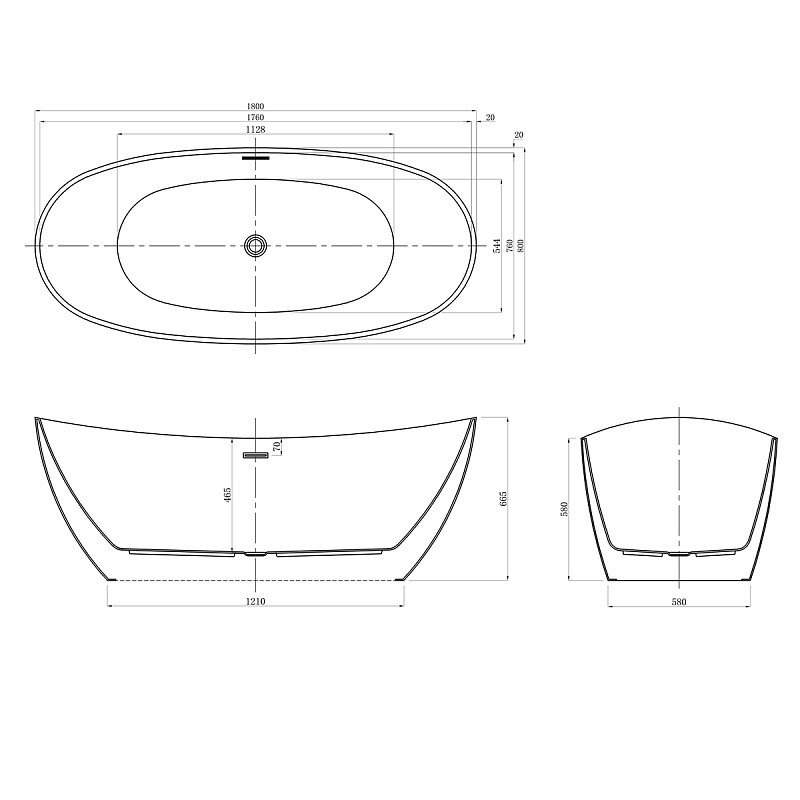 Ванна акриловая Azario Glasgow 180х80 отдельностоящая (GLA18080)