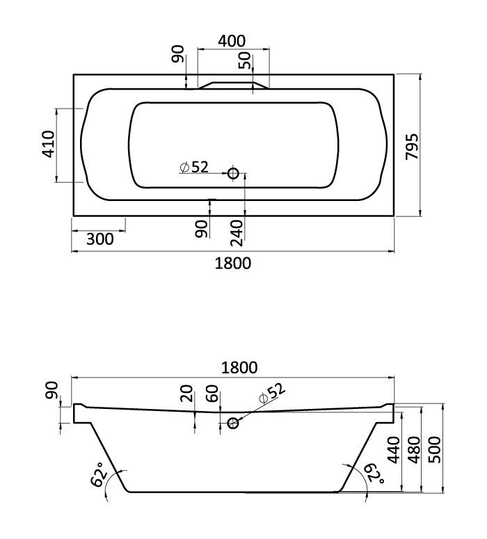 Отдельно приобретается монтажный комплект: каркас, система слив-перелив с сифоном, крепления ванны к стене и комплект креплений фронтальной панели.