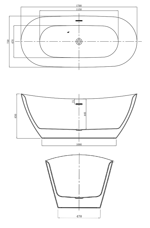 Ванна акриловая Azario GOLDFIELD 170х75 отдельностоящая (GOL17075)