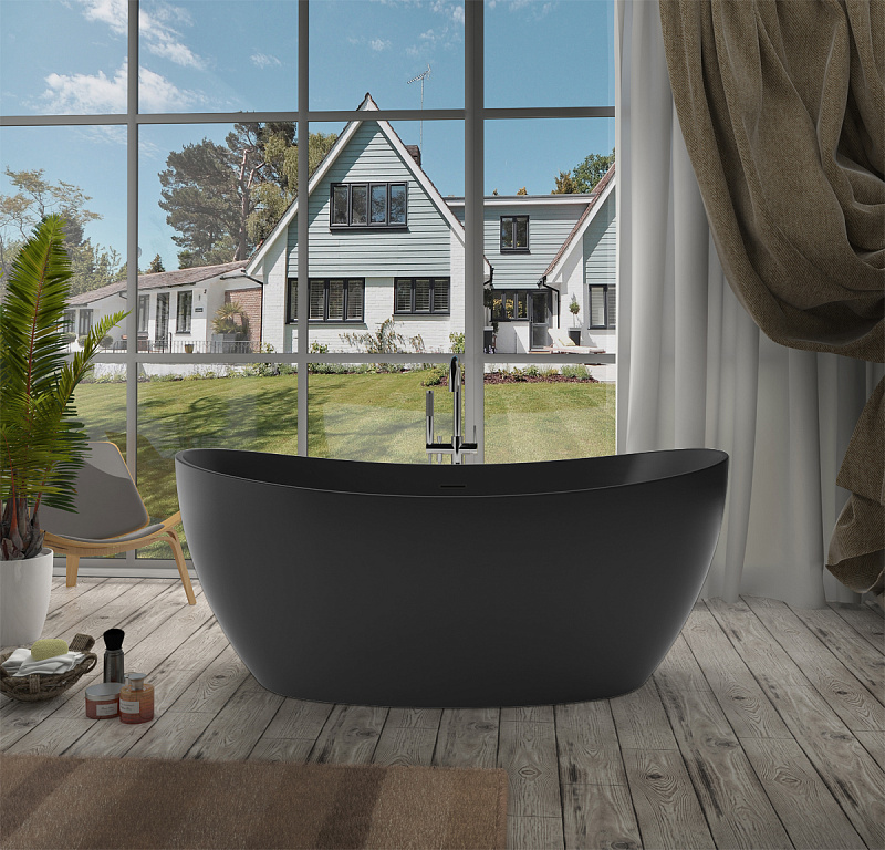 Ванна акриловая Azario GLASGOW 1700х800х665, отдельностоящая, в комплекте с сифоном и металлической рамой, цвет черный (GLA16778MB)