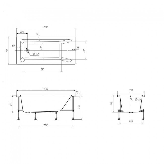 Толщина ванны, мм