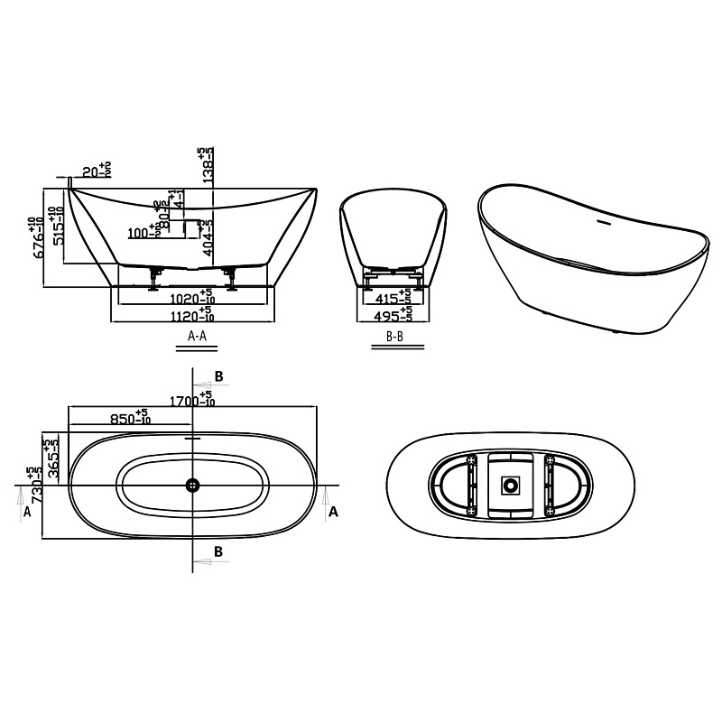 Ванна акриловая Creo Ceramique TOURS 170х730х675 отдельностоящая (TO5001)