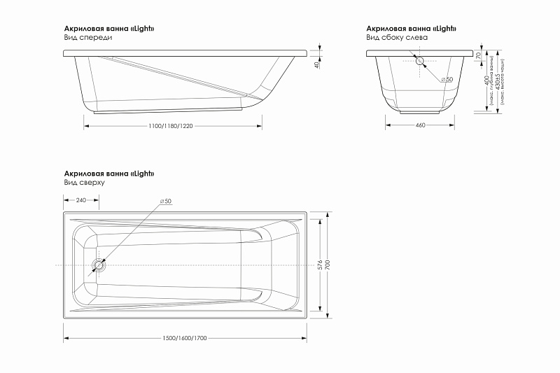Ванна акриловая Метакам Light 170х70 пристенная (АВS_011277)
