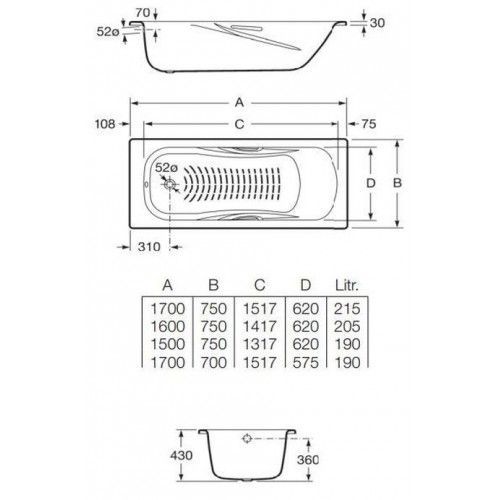 —Ванна стальная Roca PRINCESS 160х75 пристенная (7.2203.E.000.0)
