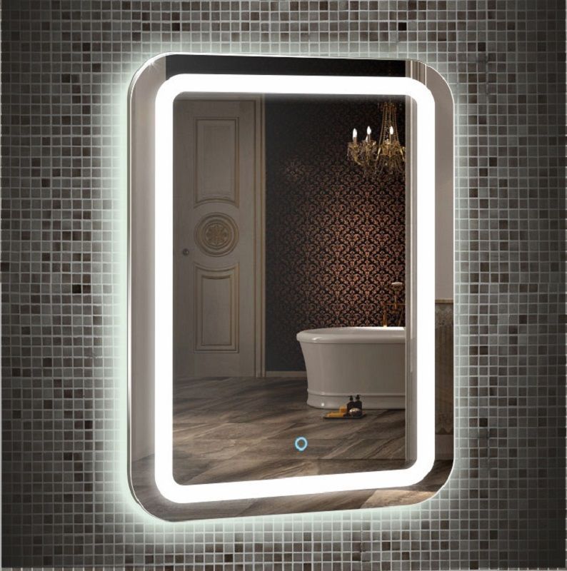 Зеркало с LED-подсветкой. Модель сделана из стекла высшего качества M0 (влагостойкое, минимальные оптические искажения). LED-подсветка выдерживает до 50 тыс. часов работы в непрерывном режиме. Изделие оснащено сенсорным выключателем с функцией плавного диммирования, с запоминанием последнего значения. Короткие касания светящейся области включают/выключают подсветку, длительное касание меняет яркость свечения. Экологически чистый продукт выполненный по стандартам ЕС.