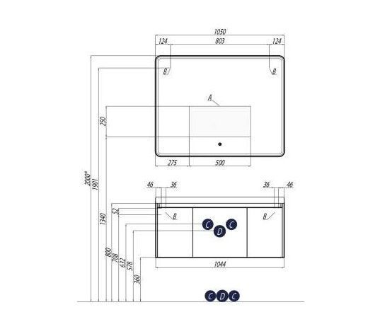 —Зеркало AQUATON Шерилл 105 подсветка, сенсорный выключатель (1A206402SH010)
