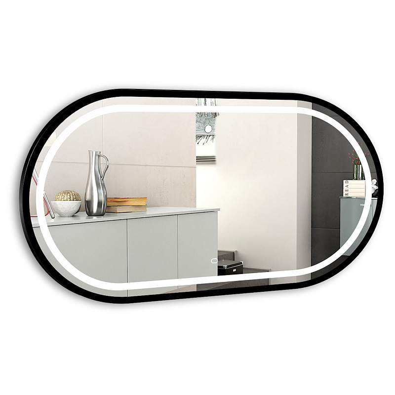 Зеркало оснащено сенсорным выключателем с функцией плавного диммирования, с запоминанием последнего значения. Короткое касание светящейся области включают/выключают подсветку, длительное касание меняет яркость свечения. Возможность горизонтального/ вертикального крепления.